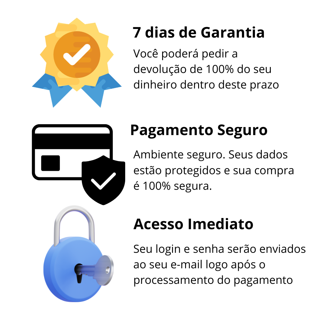 Sim! Você tem 7 dias para testar o curso sem risco nenhum. Se não gostar ou achar que não é pra você, basta pedir o reembolso completo — simples assim.